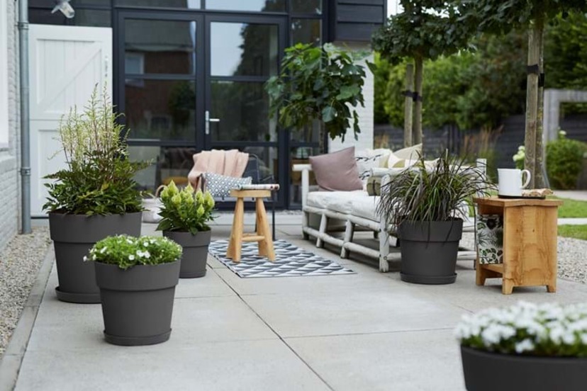 Hoe maak je van je terras een gezellige ruimte om te ontspannen? Hoe creëer je sfeervolle rustpunten in je tuin? Combineer groenblijvende of bloeiende planten met mooie potten. Zo eenvoudig kan het zijn.