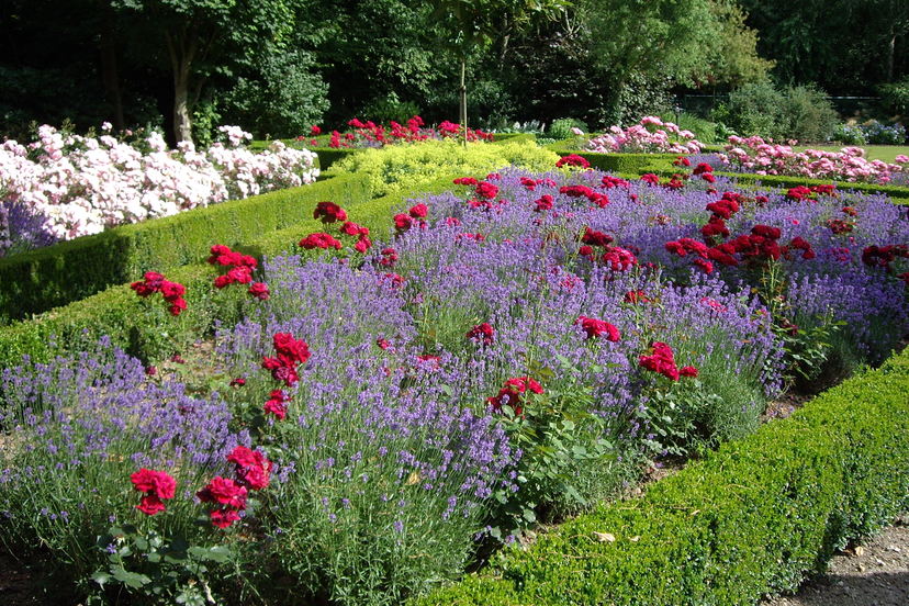 • Heesterrozen (en trosrozen) combineren uitstekend met lavendel (zie foto)
