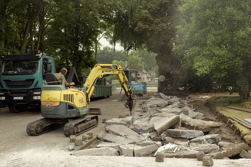 - Zoals je op de foto kan zien, zijn we heel wat verharding (beton) aan het omzetten naar plantvakken, op deze manier leveren we een bijdrage aan de noodzakelijke ontharding in de strijd tegen de droogte.