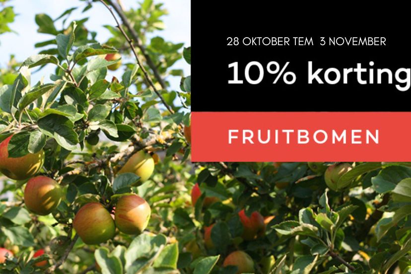 Profiteer nu van 10% korting op fruitbomen met blote wortel. Actie geldig van zaterdag 28 oktober tot en met vrijdag 3 november.