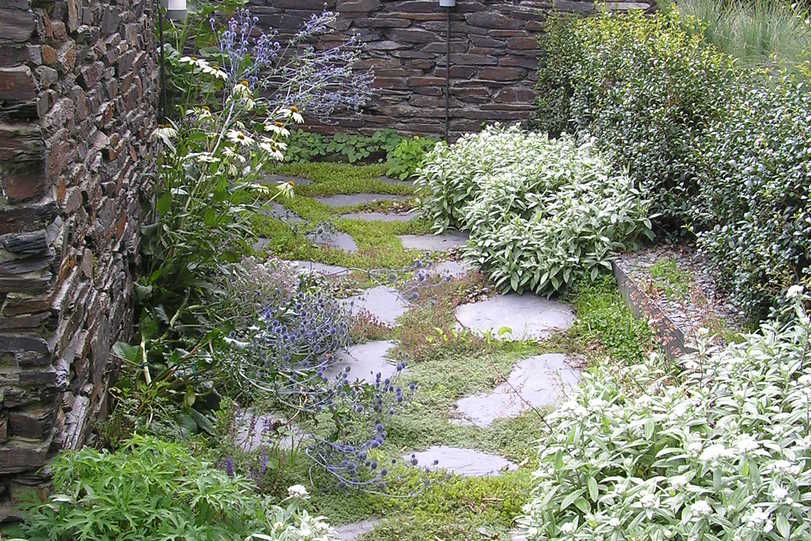 Door zijn lage hoogte is hij ideaal te gebruiken tussen stapstenen, Het is een goede groeier die al snel de bodem bedekt en weinig onderhoud vergt.'